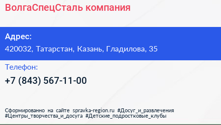 ВолгаСпецСталь, компания по адресу 420032, Татарстан, Казань, Гладилова, 35 в дальнейшем Организация, размещена в следующих категориях: