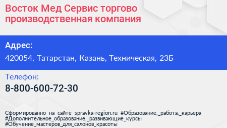 Восток Мед Сервис, торгово-производственная компания по адресу 420054, Татарстан, Казань, Техническая, 23Б в дальнейшем Организация, размещена в следующих категориях: