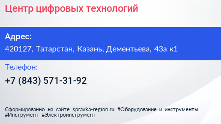 Центр цифровых технологий по адресу 420127, Татарстан, Казань, Дементьева, 43а к1 в дальнейшем Организация, размещена в следующих категориях: