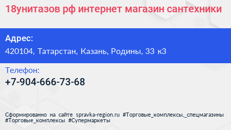 18унитазов.рф, интернет-магазин сантехники по адресу 420104, Татарстан, Казань, Родины, 33 к3 в дальнейшем Организация, размещена в следующих категориях:
