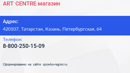 ART CENTRE, магазин по адресу 420107, Татарстан, Казань, Петербургская, 64 в дальнейшем Организация, размещена в следующих категориях:
