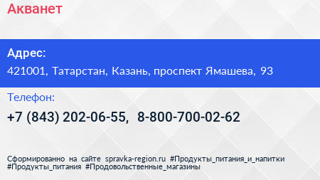 Акванет по адресу 421001, Татарстан, Казань, проспект Ямашева, 93 в дальнейшем Организация, размещена в следующих категориях: