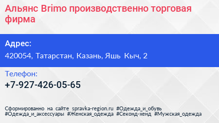 Альянс Brimo, производственно-торговая фирма по адресу 420054, Татарстан, Казань, Яшь Кыч, 2 в дальнейшем Организация, размещена в следующих категориях: