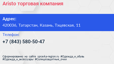 Aristo, торговая компания по адресу 420036, Татарстан, Казань, Тэцевская, 11 в дальнейшем Организация, размещена в следующих категориях: