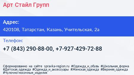 Арт Стайл Групп по адресу 420108, Татарстан, Казань, Учительская, 2а в дальнейшем Организация, размещена в следующих категориях: