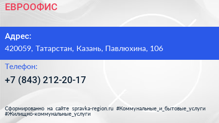 ЕВРООФИС по адресу 420059, Татарстан, Казань, Павлюхина, 106 в дальнейшем Организация, размещена в следующих категориях: