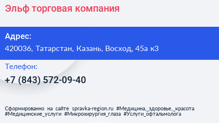 Эльф, торговая компания по адресу 420036, Татарстан, Казань, Восход, 45а к3 в дальнейшем Организация, размещена в следующих категориях: