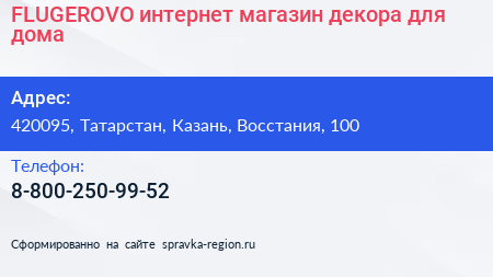 FLUGEROVO, интернет-магазин декора для дома по адресу 420095, Татарстан, Казань, Восстания, 100 в дальнейшем Организация, размещена в следующих категориях: