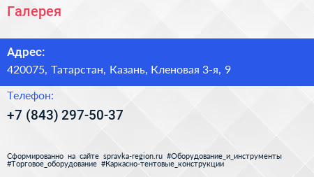 Галерея по адресу 420075, Татарстан, Казань, Кленовая 3-я, 9 в дальнейшем Организация, размещена в следующих категориях: