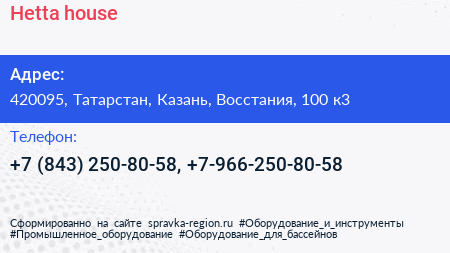 Hetta house по адресу 420095, Татарстан, Казань, Восстания, 100 к3 в дальнейшем Организация, размещена в следующих категориях:
