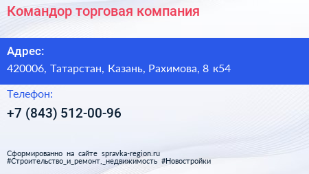 Командор, торговая компания по адресу 420006, Татарстан, Казань, Рахимова, 8 к54 в дальнейшем Организация, размещена в следующих категориях: