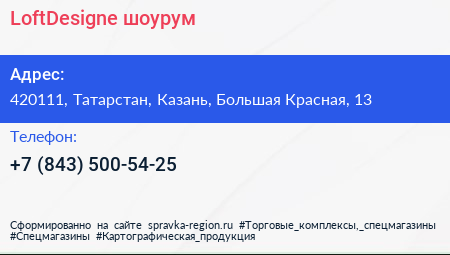 LoftDesigne, шоурум по адресу 420111, Татарстан, Казань, Большая Красная, 13 в дальнейшем Организация, размещена в следующих категориях: