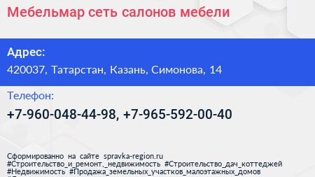 Мебельмар, сеть салонов мебели по адресу 420037, Татарстан, Казань, Симонова, 14 в дальнейшем Организация, размещена в следующих категориях: