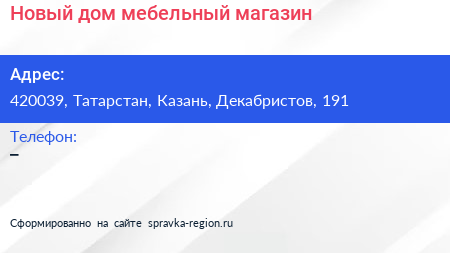 Новый дом, мебельный магазин по адресу 420039, Татарстан, Казань, Декабристов, 191 в дальнейшем Организация, размещена в следующих категориях:
