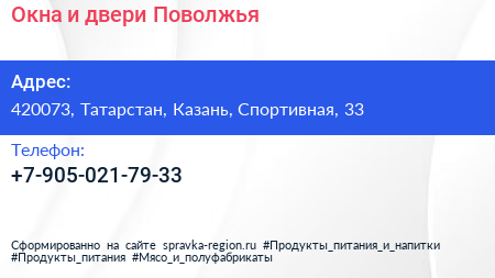 Окна и двери Поволжья по адресу 420073, Татарстан, Казань, Спортивная, 33 в дальнейшем Организация, размещена в следующих категориях: