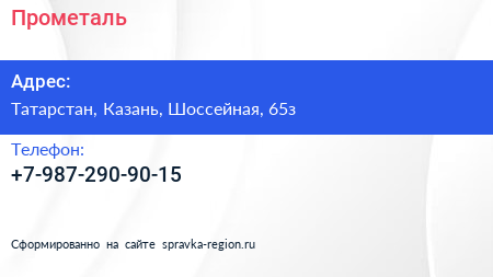 Прометаль по адресу Татарстан, Казань, Шоссейная, 65з в дальнейшем Организация, размещена в следующих категориях: