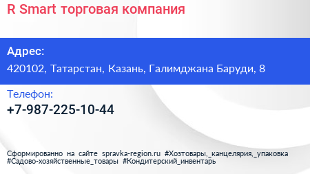 R-Smart, торговая компания по адресу 420102, Татарстан, Казань, Галимджана Баруди, 8 в дальнейшем Организация, размещена в следующих категориях: