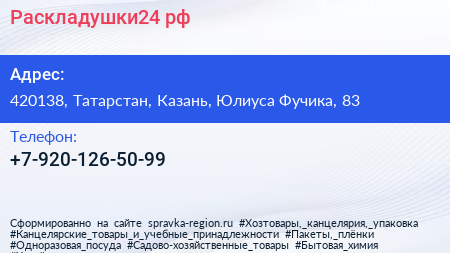 Раскладушки24.рф по адресу 420138, Татарстан, Казань, Юлиуса Фучика, 83 в дальнейшем Организация, размещена в следующих категориях:
