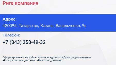 Рига, компания по адресу 420095, Татарстан, Казань, Васильченко, 9в в дальнейшем Организация, размещена в следующих категориях: