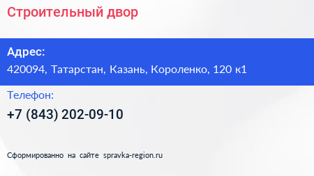 Строительный двор по адресу 420094, Татарстан, Казань, Короленко, 120 к1 в дальнейшем Организация, размещена в следующих категориях: