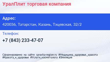 УралПлит, торговая компания по адресу 420036, Татарстан, Казань, Тэцевская, 32/2 в дальнейшем Организация, размещена в следующих категориях: