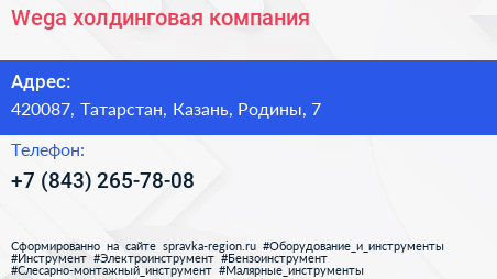 Wega, холдинговая компания по адресу 420087, Татарстан, Казань, Родины, 7 в дальнейшем Организация, размещена в следующих категориях: