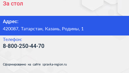 За стол по адресу 420087, Татарстан, Казань, Родины, 1 в дальнейшем Организация, размещена в следующих категориях: