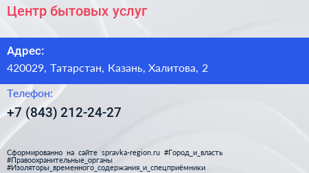 Центр бытовых услуг по адресу 420029, Татарстан, Казань, Халитова, 2 в дальнейшем Организация, размещена в следующих категориях: