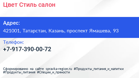 Цвет & Стиль, салон по адресу 421001, Татарстан, Казань, проспект Ямашева, 93 в дальнейшем Организация, размещена в следующих категориях: