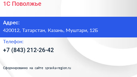 1С-Поволжье по адресу 420012, Татарстан, Казань, Муштари, 12Б в дальнейшем Организация, размещена в следующих категориях: