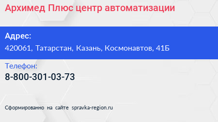 Архимед Плюс, центр автоматизации по адресу 420061, Татарстан, Казань, Космонавтов, 41Б в дальнейшем Организация, размещена в следующих категориях: