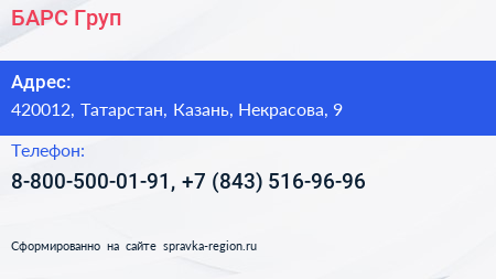 БАРС Груп по адресу 420012, Татарстан, Казань, Некрасова, 9 в дальнейшем Организация, размещена в следующих категориях: