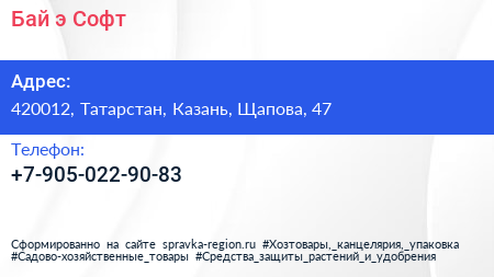 Бай э Софт по адресу 420012, Татарстан, Казань, Щапова, 47 в дальнейшем Организация, размещена в следующих категориях: