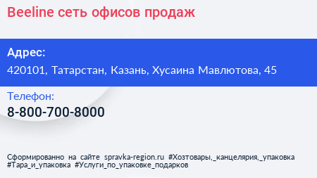 Beeline, сеть офисов продаж по адресу 420101, Татарстан, Казань, Хусаина Мавлютова, 45 в дальнейшем Организация, размещена в следующих категориях: