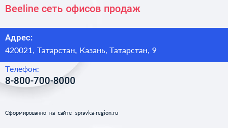 Beeline, сеть офисов продаж по адресу 420021, Татарстан, Казань, Татарстан, 9 в дальнейшем Организация, размещена в следующих категориях: