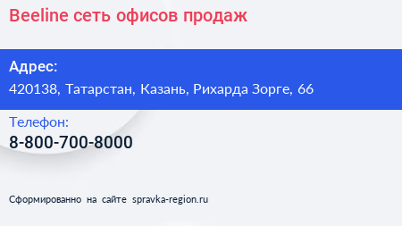 Beeline, сеть офисов продаж по адресу 420138, Татарстан, Казань, Рихарда Зорге, 66 в дальнейшем Организация, размещена в следующих категориях: