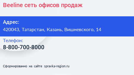 Beeline, сеть офисов продаж по адресу 420043, Татарстан, Казань, Вишневского, 14 в дальнейшем Организация, размещена в следующих категориях: