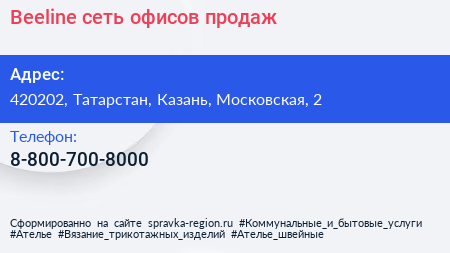 Beeline, сеть офисов продаж по адресу 420202, Татарстан, Казань, Московская, 2 в дальнейшем Организация, размещена в следующих категориях: