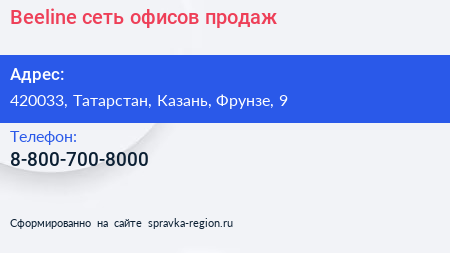 Beeline, сеть офисов продаж по адресу 420033, Татарстан, Казань, Фрунзе, 9 в дальнейшем Организация, размещена в следующих категориях: