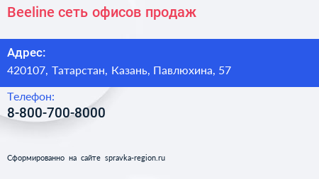 Beeline, сеть офисов продаж по адресу 420107, Татарстан, Казань, Павлюхина, 57 в дальнейшем Организация, размещена в следующих категориях: