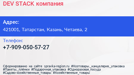 DEV-STACK, компания по адресу 421001, Татарстан, Казань, Четаева, 2 в дальнейшем Организация, размещена в следующих категориях: