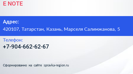 E.NOTE по адресу 420107, Татарстан, Казань, Марселя Салимжанова, 5 в дальнейшем Организация, размещена в следующих категориях: