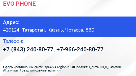 EVO PHONE по адресу 420124, Татарстан, Казань, Четаева, 58Б в дальнейшем Организация, размещена в следующих категориях: