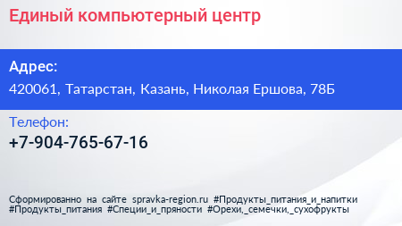 Единый компьютерный центр по адресу 420061, Татарстан, Казань, Николая Ершова, 78Б в дальнейшем Организация, размещена в следующих категориях: