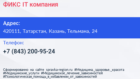 ФИКС, IT-компания по адресу 420111, Татарстан, Казань, Тельмана, 24 в дальнейшем Организация, размещена в следующих категориях: