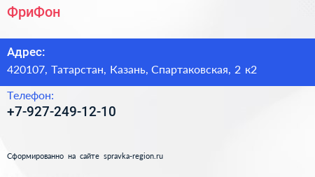 ФриФон по адресу 420107, Татарстан, Казань, Спартаковская, 2 к2 в дальнейшем Организация, размещена в следующих категориях: