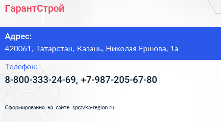 ГарантСтрой по адресу 420061, Татарстан, Казань, Николая Ершова, 1а в дальнейшем Организация, размещена в следующих категориях: