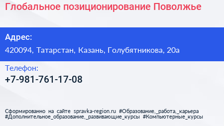 Глобальное позиционирование-Поволжье по адресу 420094, Татарстан, Казань, Голубятникова, 20а в дальнейшем Организация, размещена в следующих категориях: