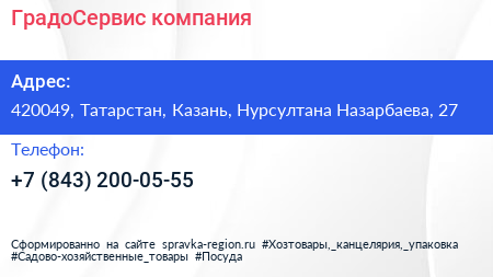 ГрадоСервис, компания по адресу 420049, Татарстан, Казань, Нурсултана Назарбаева, 27 в дальнейшем Организация, размещена в следующих категориях: