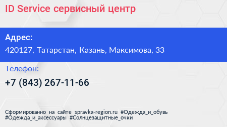 ID Service, сервисный центр по адресу 420127, Татарстан, Казань, Максимова, 33 в дальнейшем Организация, размещена в следующих категориях: